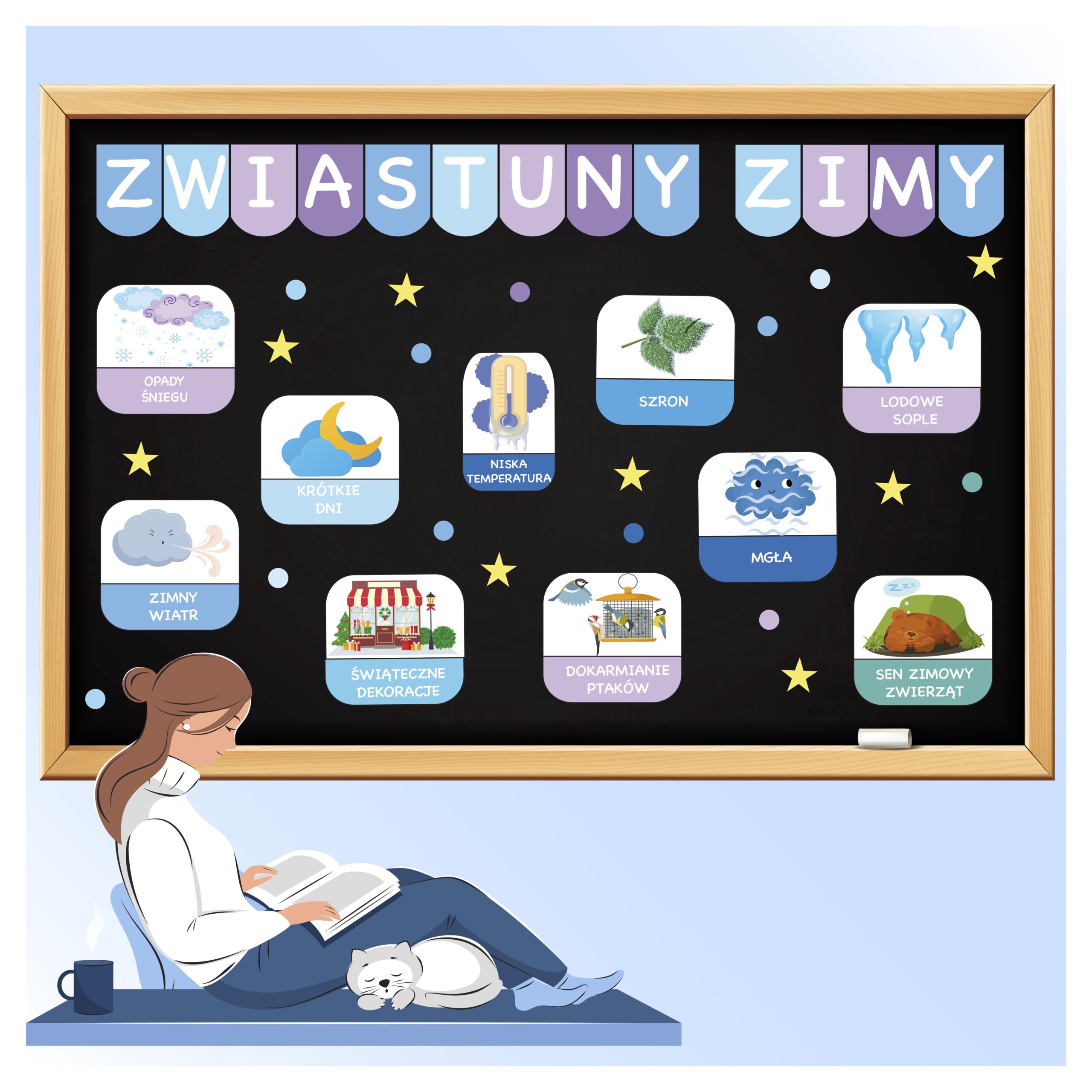 Przedstawiamy zestaw do stworzenia wyjątkowej gazetki edukacyjnej o zwiastunach zimy. Zestaw składa się z 38 stron PDF i zawiera wszystkie niezbędne elementy do przygotowania tablicy tematycznej.