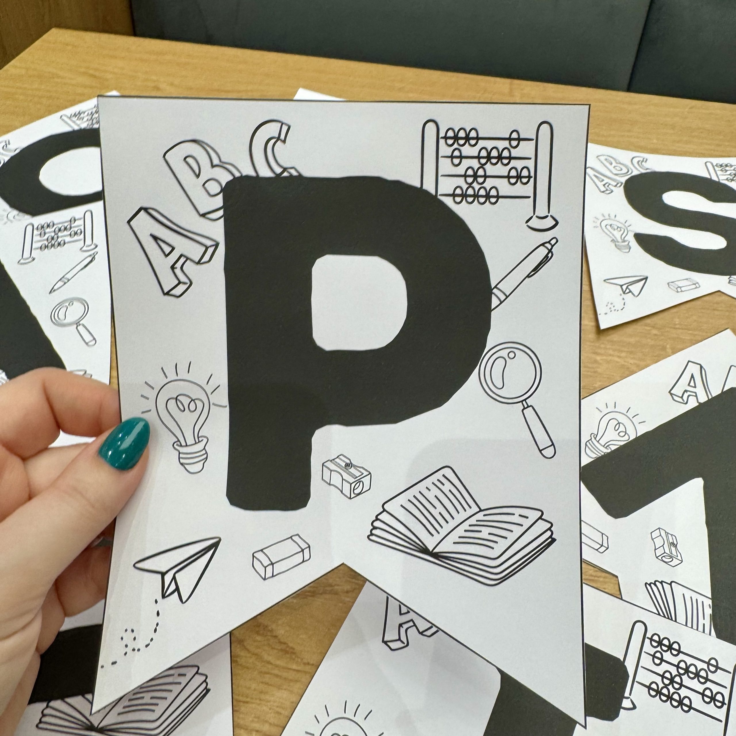 litery w dużym formacie A4 – od razu gotowe do powieszenia.