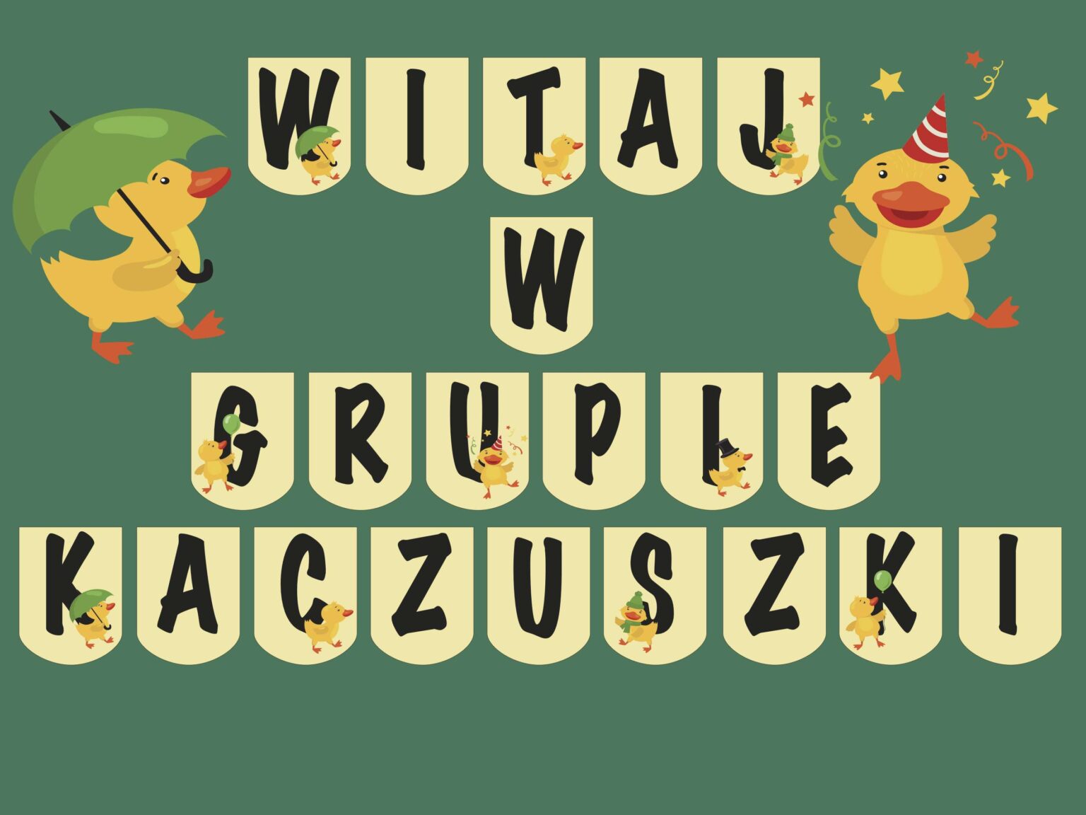 Dodaj girlandę „Witaj w grupie Kaczuszki” do swojej sali i powitaj dzieci z uśmiechem!