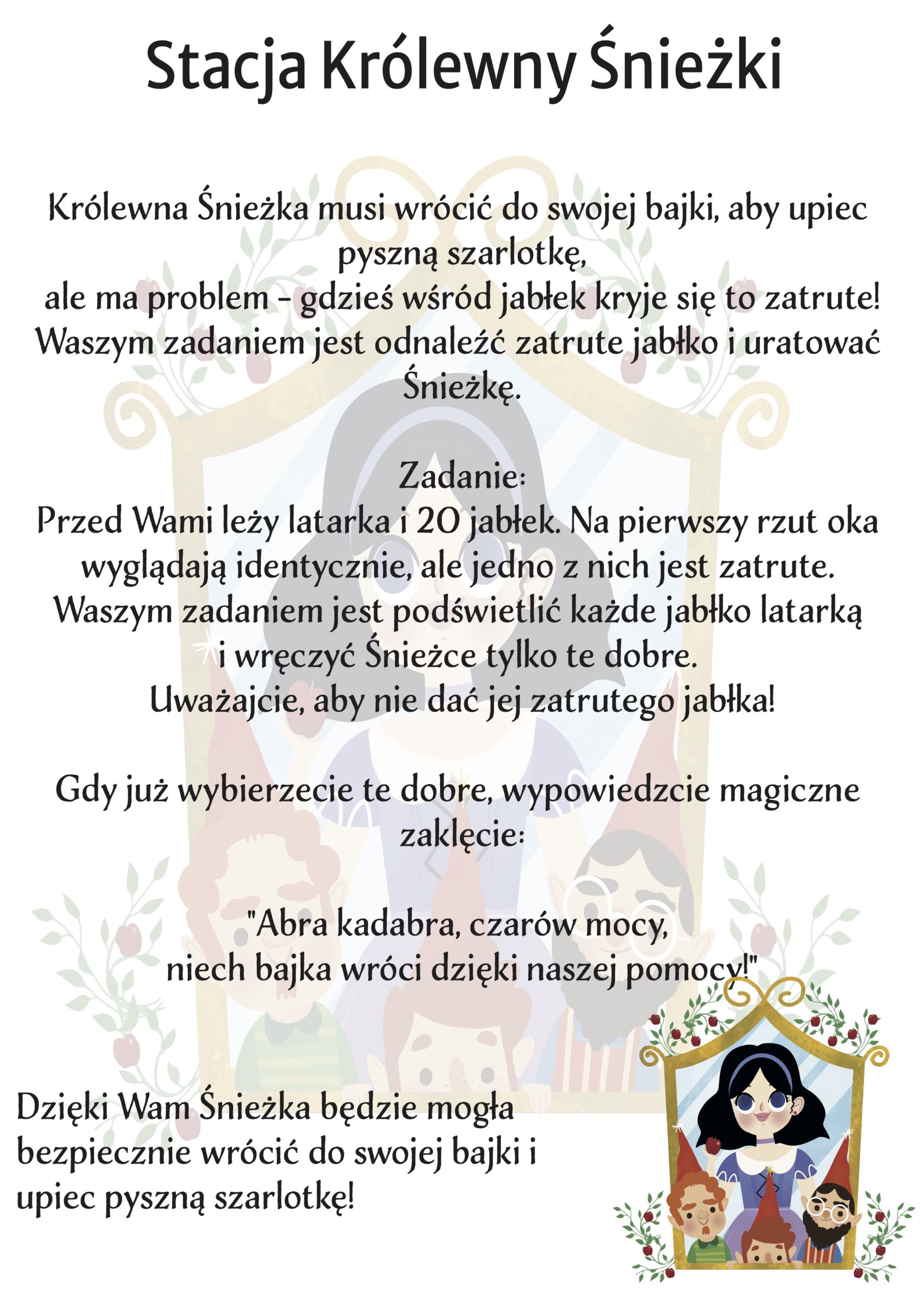 Pomoc Czerwonemu Kapturkowi w odnalezieniu smakołyków, które zgubił w lesie, to pełne emocji zadanie, które rozwija zmysł obserwacji i spostrzegawczość. - Wyzwanie Królewny Śnieżki