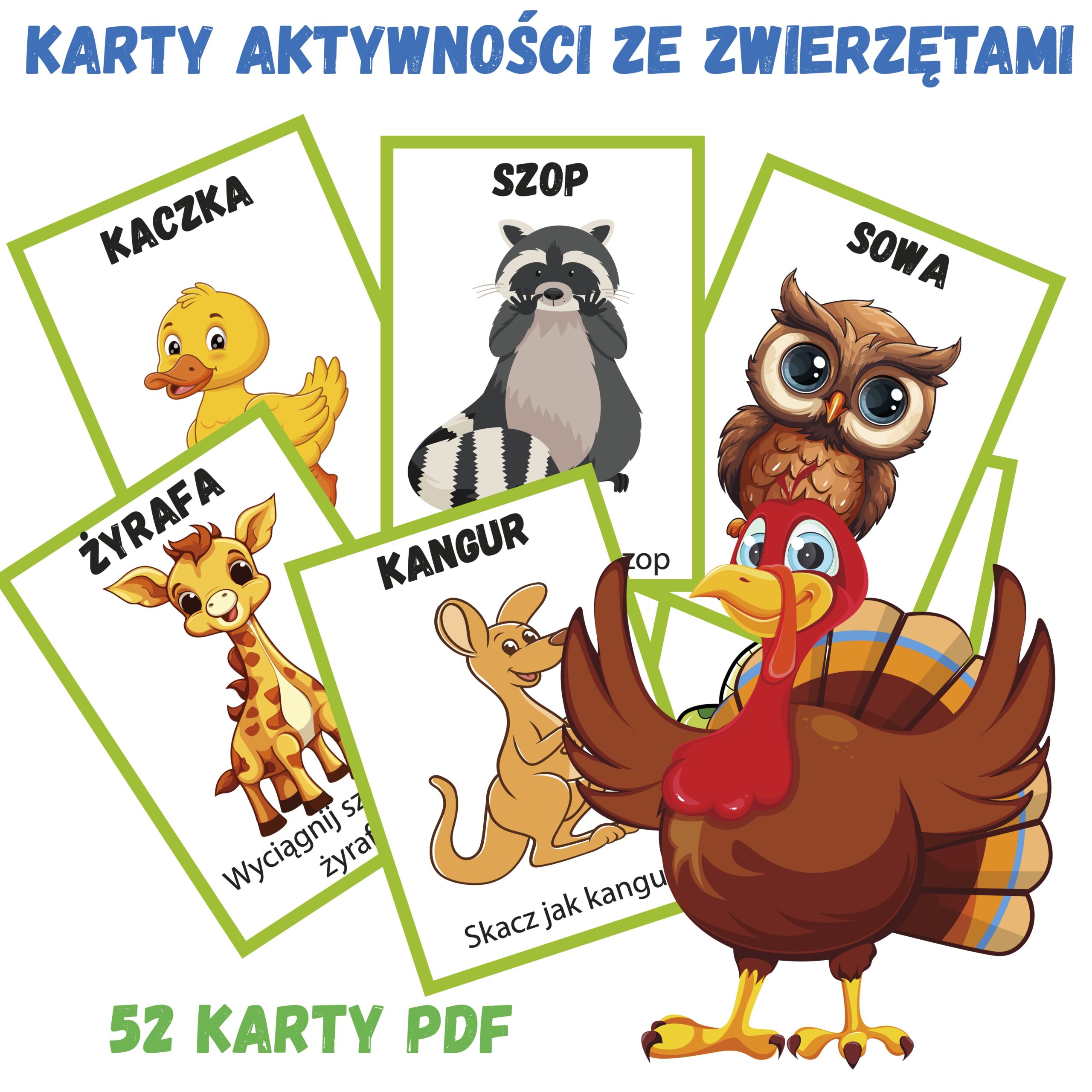 Karty aktywności ze zwierzętami dla dzieci – PDF do druku (52 karty)