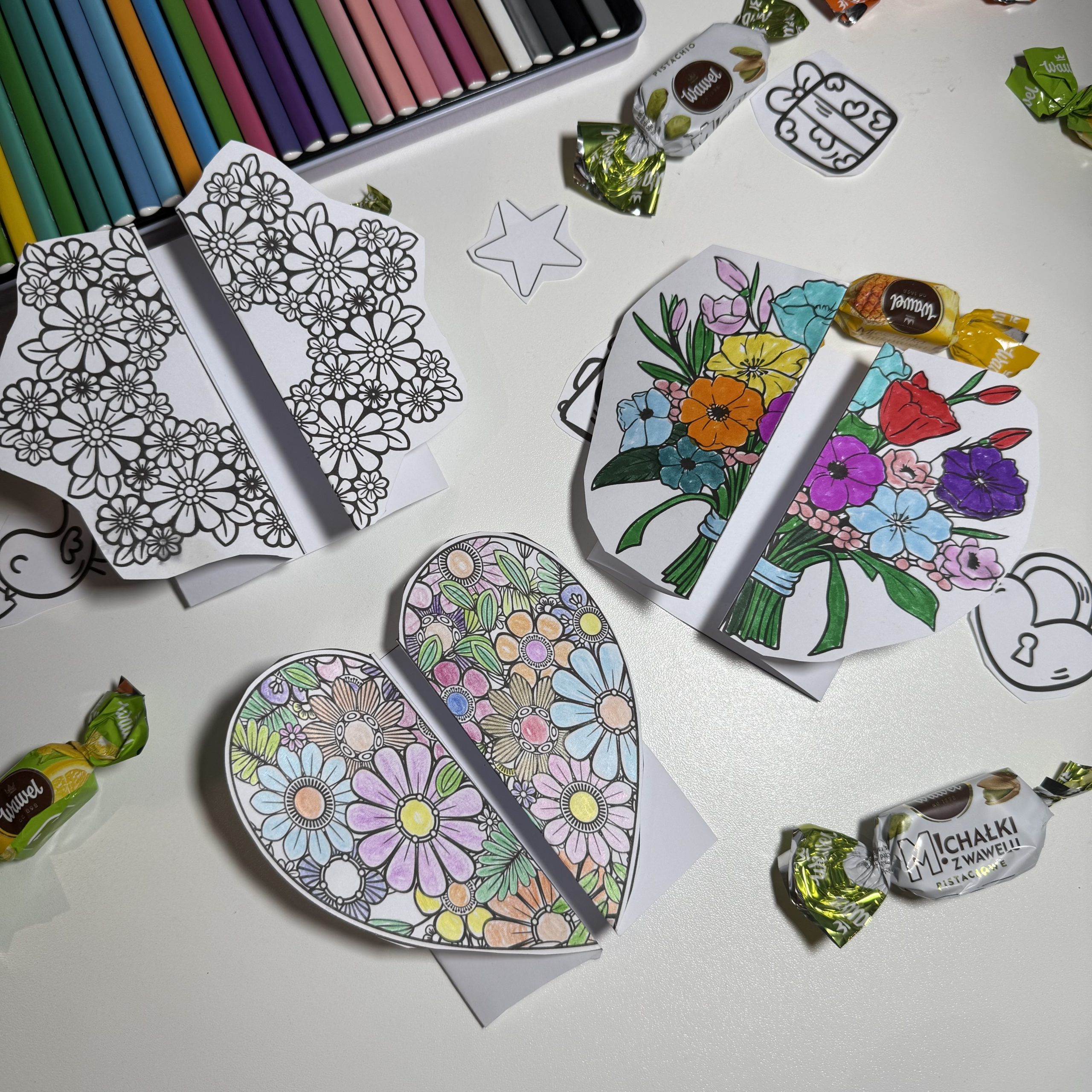 • 10 różnych wzorów laurek do składania