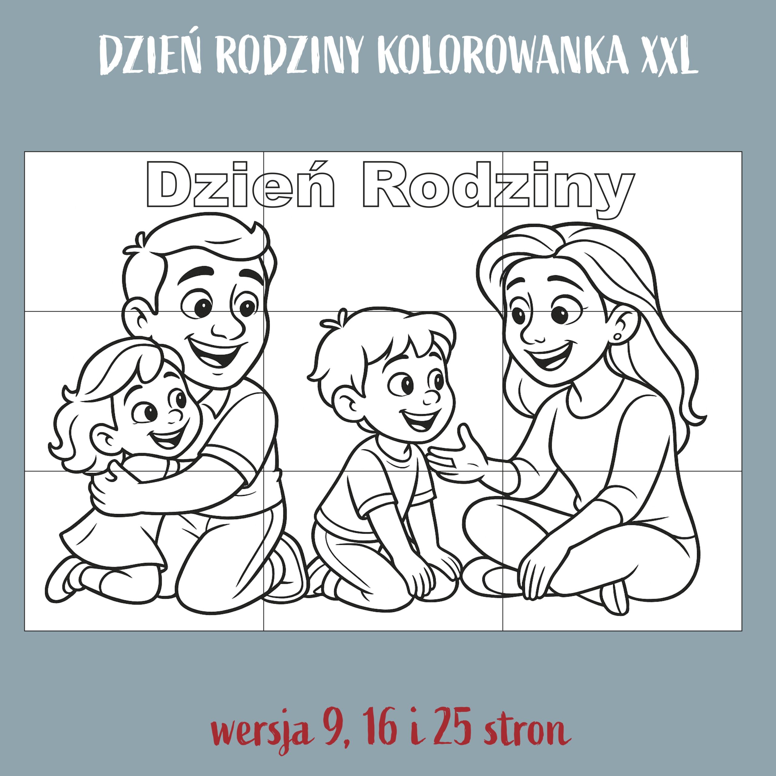 Szukasz kreatywnego pomysłu na Dzień Rodziny? Zorganizuj wyjątkową zabawę z naszą kolorowanką XXL „Moja Rodzinka”! To plakat do samodzielnego wydruku w formacie PDF – idealny do przedszkola, szkoły podstawowej lub świetlicy.