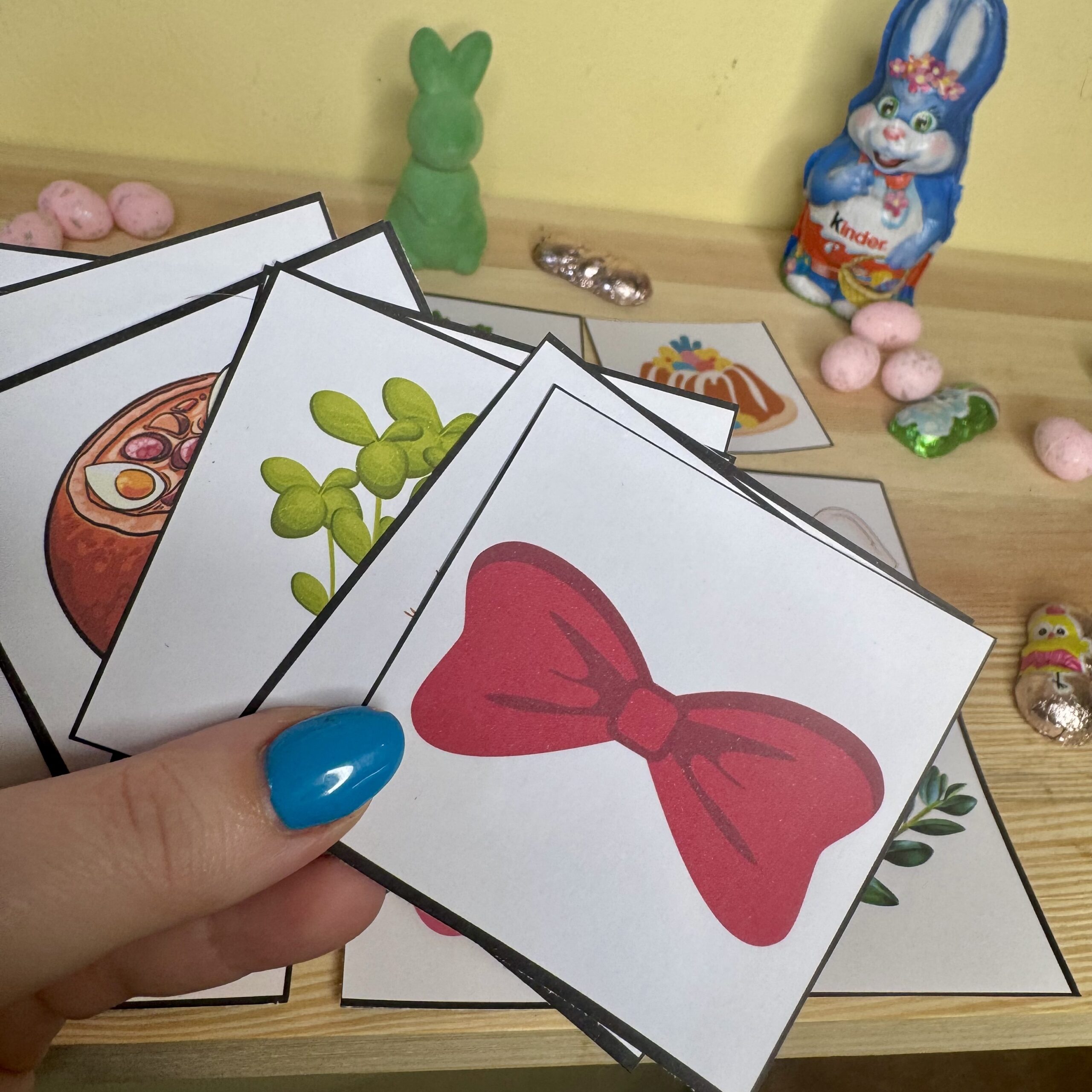 2️⃣ Ukryj karty z wielkanocnymi symbolami w wybranym miejscu.