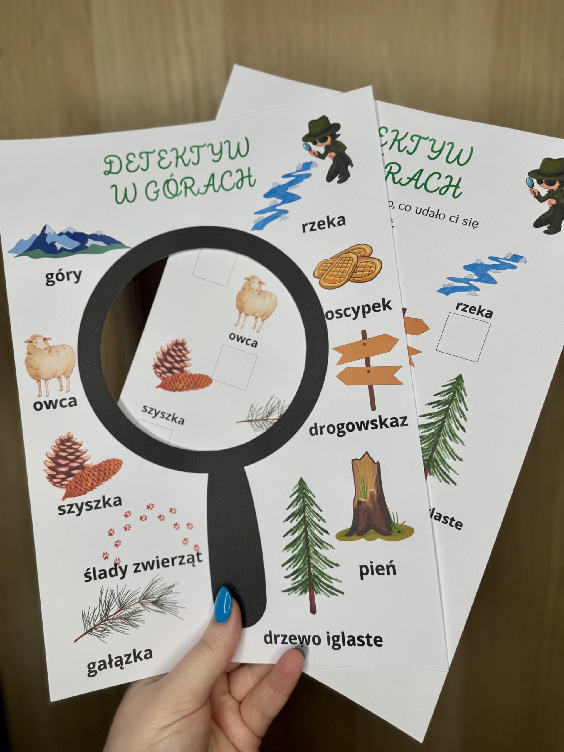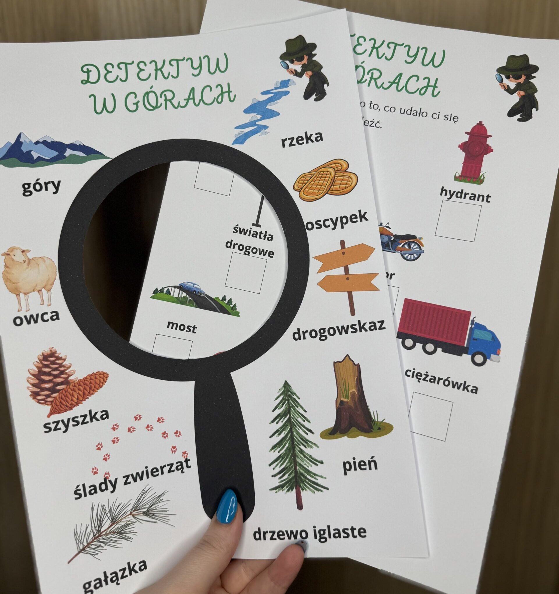 ✔️ Lista poszukiwacza – dzieci zaznaczają znalezione obiekty.