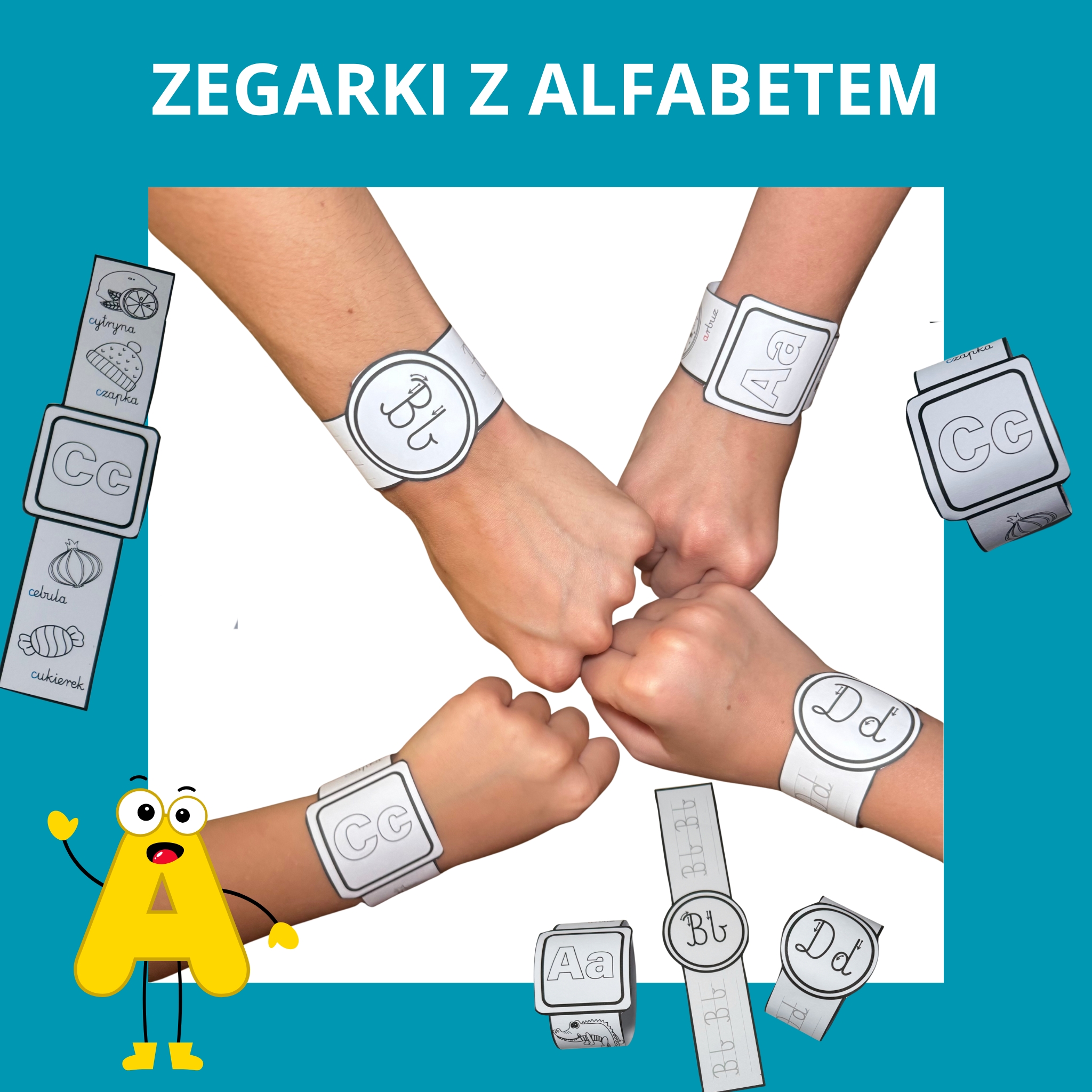 „Zegarki z alfabetem” to nie tylko edukacyjna zabawa, ale także skuteczna forma przygotowania dziecka do nauki pisania i poznawania zegara. Połączenie kolorowanki z ćwiczeniami w trzylinii wspiera rozwój grafomotoryczny i ułatwia zapamiętywanie liter oraz cyfr.