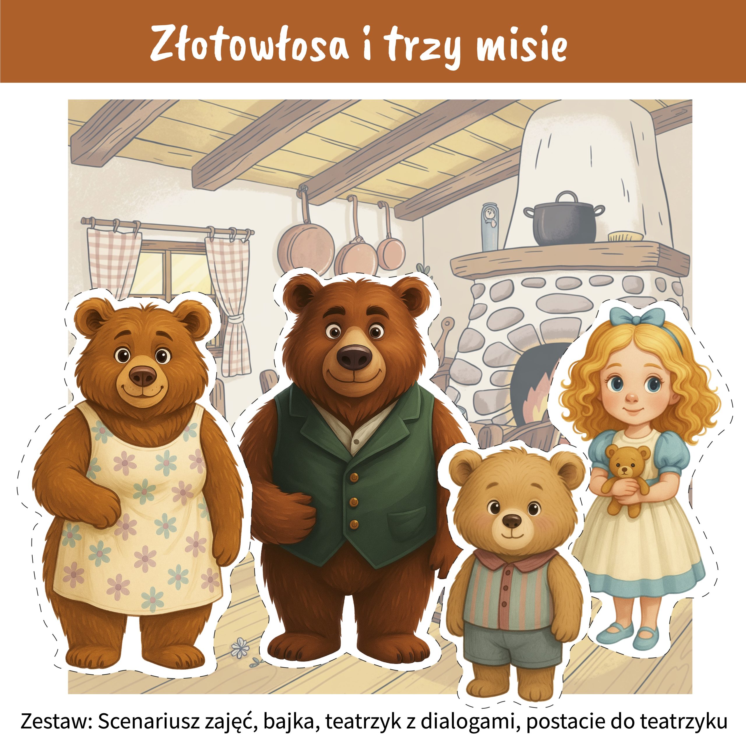 Poznaj wyjątkowy zestaw edukacyjny, który wprowadzi dzieci w magiczny świat klasycznej bajki „Złotowłosa i trzy misie”. To materiał stworzony z myślą o nauczycielkach przedszkola, wychowawczyniach i osobach prowadzących zajęcia, które chcą połączyć czytanie, teatrzyk, zabawę i rozmowę o emocjach w jednym, spójnym scenariuszu.